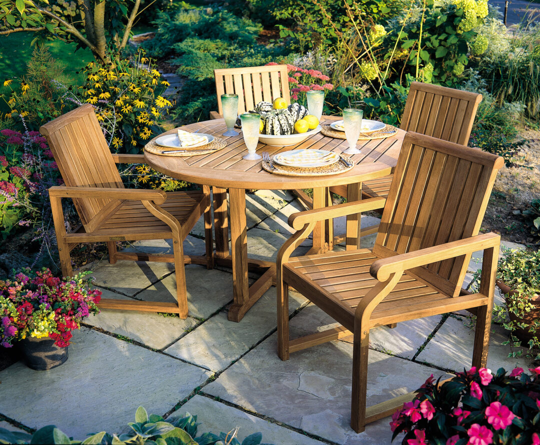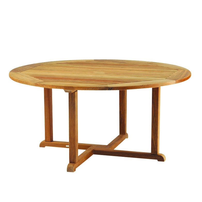 The Essex round dining tables are hand crafted from solid teak with meticulous care, using precise mortise and tenon joinery. Slats on table tops have beveled edges to allow rainwater to more easily drain from the surface. Essex is designed to complement our full assortment of teak and wicker seating. The 36″ table seats two to four and the 42″ table seats four. Both tables come with a 1.5″ umbrella hole and plug.