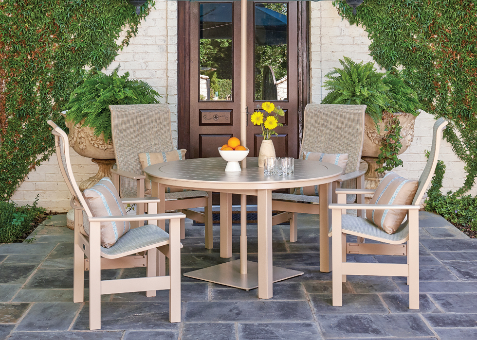The Leeward Sling Supreme Arm Chair has a taller back than the normal version and features durable and replaceable slings that provide amazing comfort without the hassle of cushions. The frame is powder coated aluminum with marine grade polymer arms. There are many color options available.
