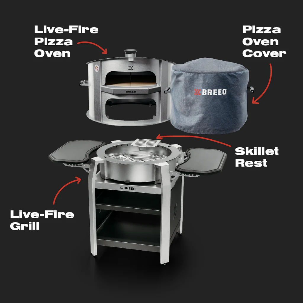 Create professional pizzas in only a few minutes with the Live-Fire Grill Pizza Bundle. Breeo’s Live-Fire Pizza oven is sure to impress your guests. Pizza oven is available in corten or stainless steel.