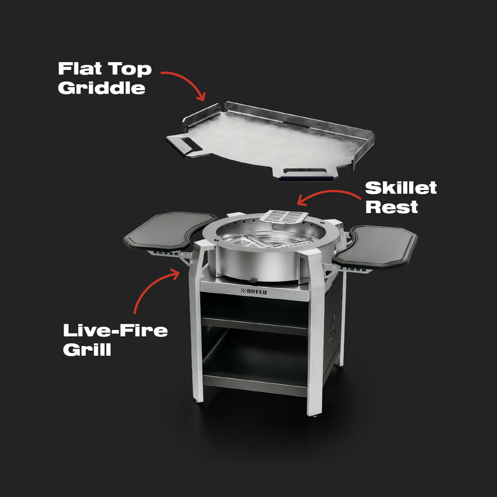 The Searing bundle comes with Breeo’s Flat Top Griddle. Smash, sizzle, and sear to perfection on this premium carbon steel surface to deliver even heat no matter what you’re cooking.
