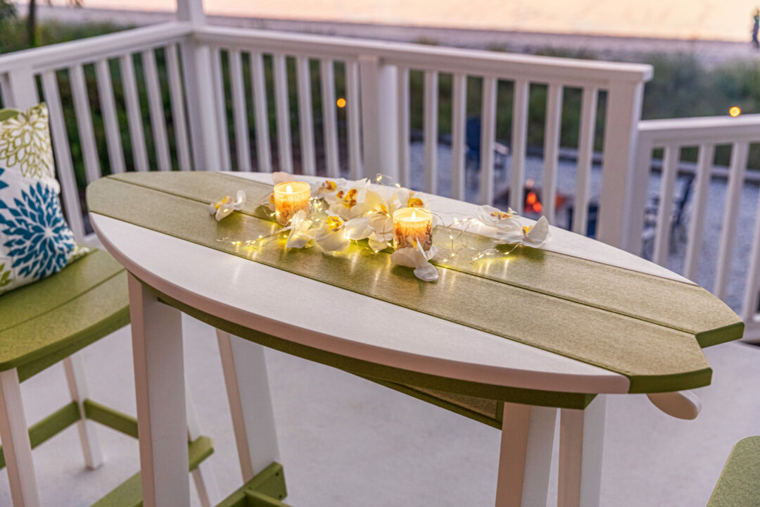 Refine your outdoor patio or deck with SurfAira poly furniture. Designed to enjoy dining outdoors with a unique touch. SurfAira tables come in multiple sizes and heights.